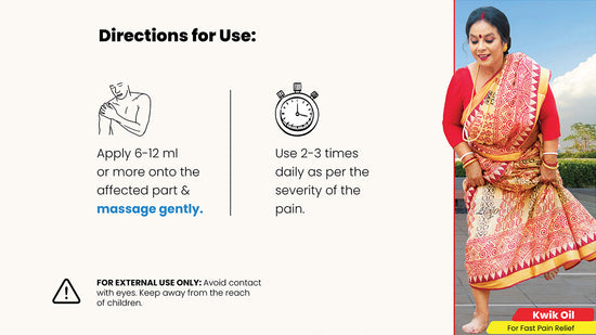 Kwik Pain Relieving Oil is specially formulated for elders keeping in mind safety, effectiveness and long-term condition improvement.